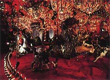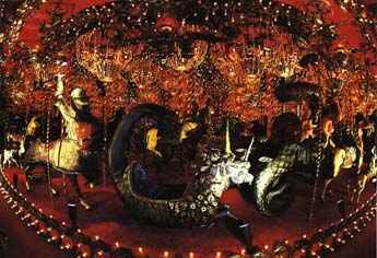 室内に超巨大、電飾ギラギラメリーゴーランド